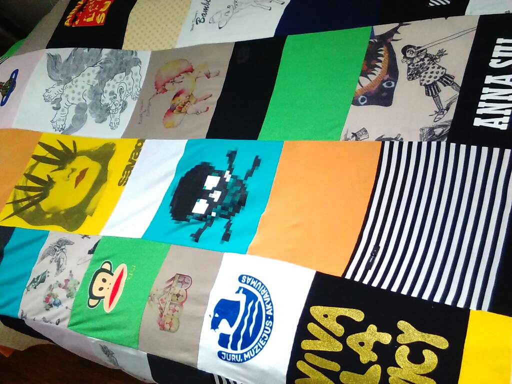 Tシャツを切る作業、並べて色味や柄のバランスを考える作業、ミシンで縫う作業、意外と手間がかかった。ただ切って繋げばいいってもんじゃなかった。