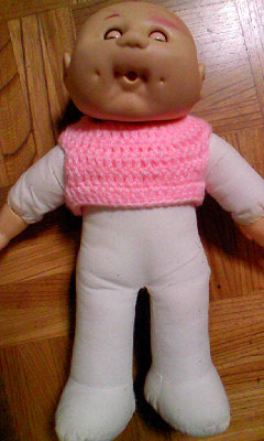 しかも、ピンクの毛糸が思いのほか足りなくなって、服も中途半端な状態で製作中止。