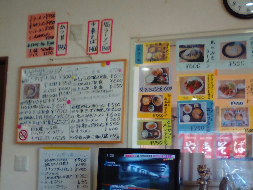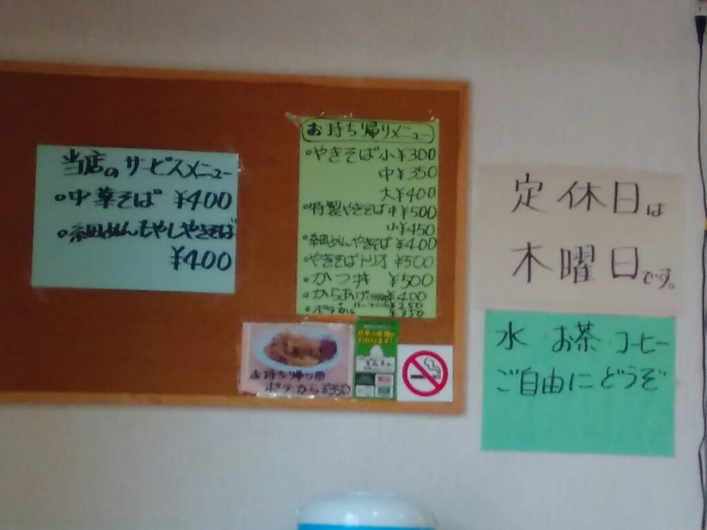 やきそばのほかに、しょうが焼き定食、からあげ定食、ラーメンとミニカレーのセットなどメニューもいろいろ。どれも安くてびっくり価格、心は揺れ動くばかり。