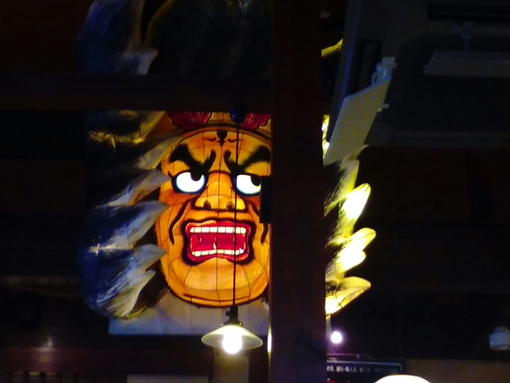 このねぶたの生首(?)は、店内に飾ってあった。「米粒1つも残すな!」と、言わんばかりに客をすごい形相でにらんでた。