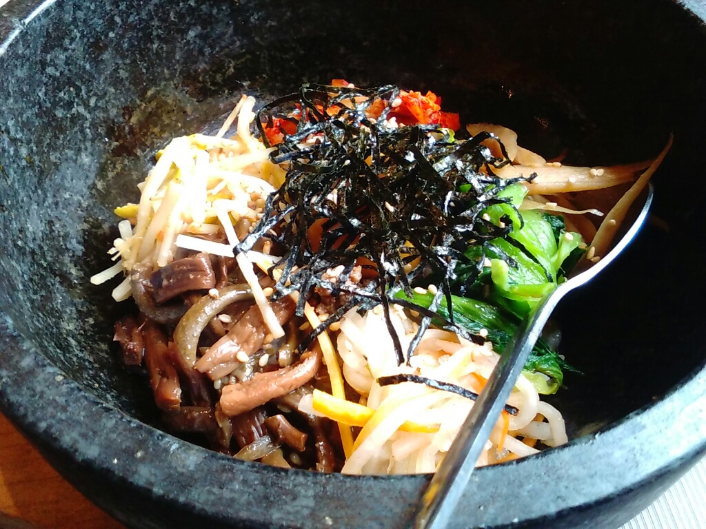 あつあつの石焼ビビンバ。ほどよい辛みが、寒空の下を歩いた体をぽかぽかにしてくれたし。