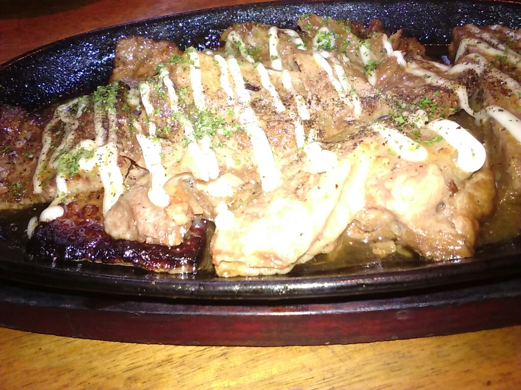 ハンバーグ・豚バラなんこつ・ステーキのセット、ビック3定食なるものを注文してみた。