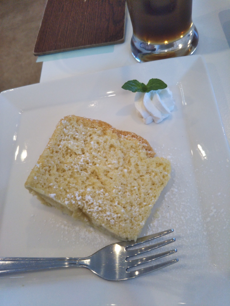 このデザート、米粉のシフォンケーキは美味しかったので、スイーツは「有り」かも!?