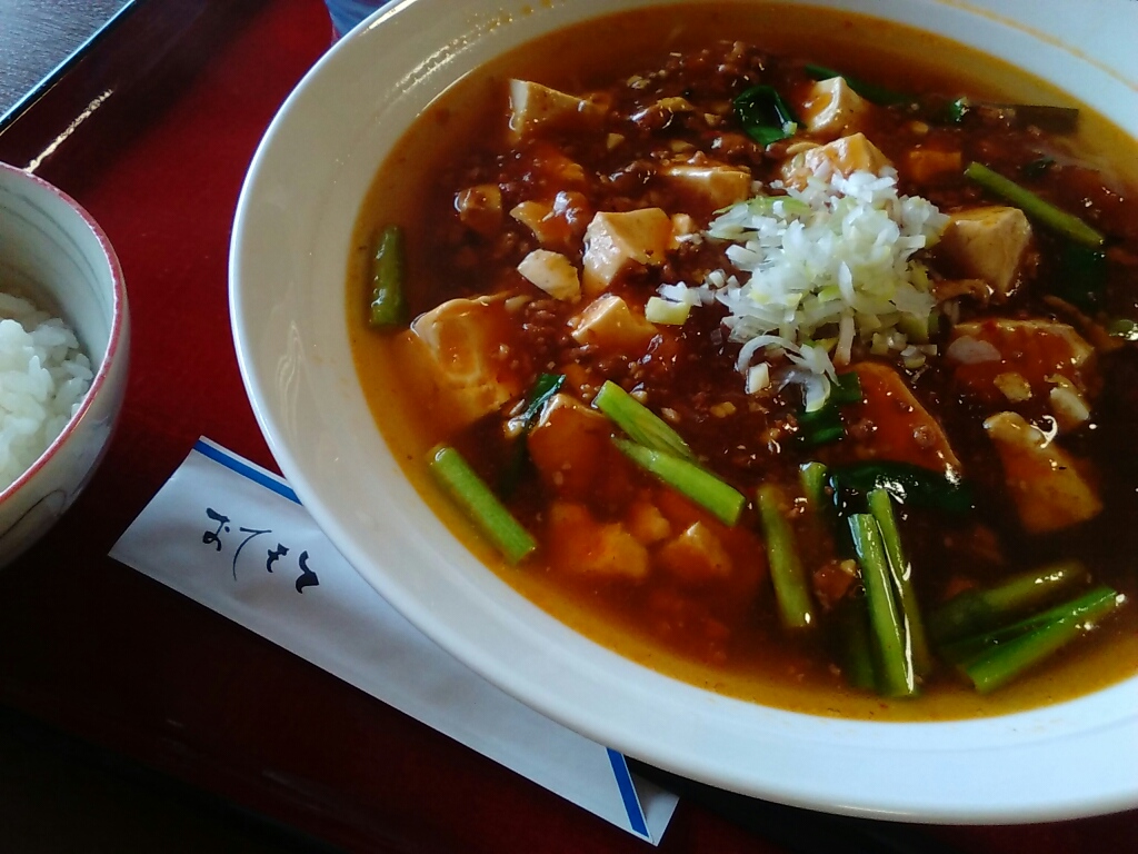 ちなみに、三沢市の小笠原食堂(コチラ参照)の麻婆麺ってのは、汁なしの麺に麻婆を絡めて食べるタイプ。そっちのはじゃじゃ麺みたいなかんじ。
