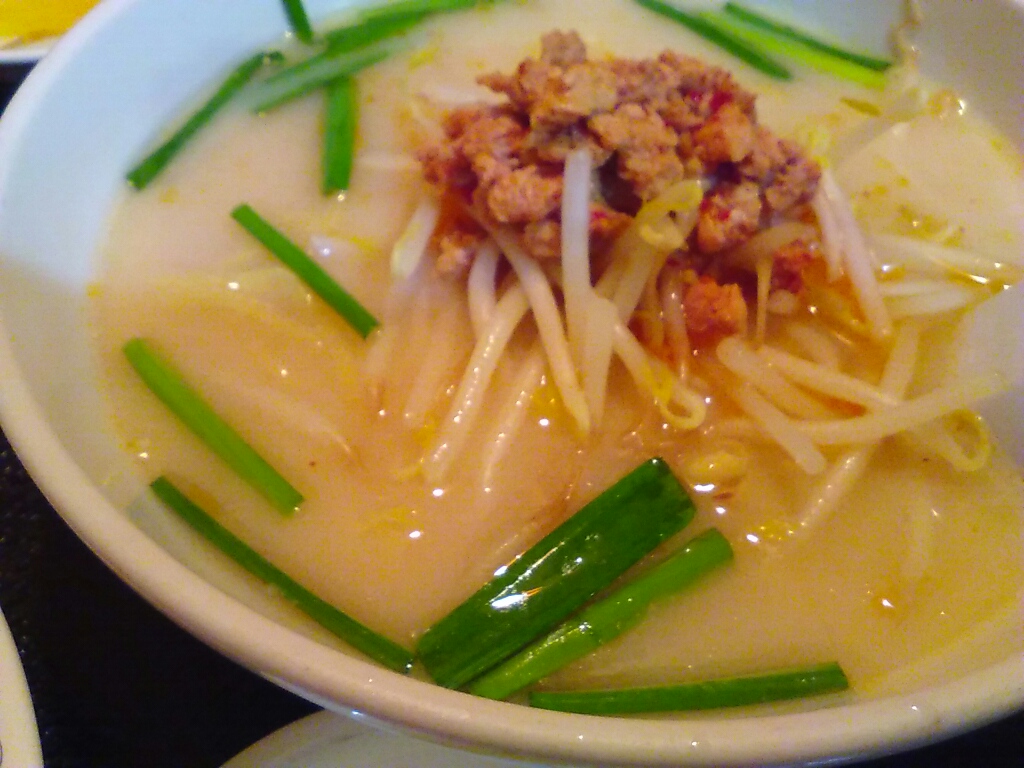 四川とはいえ、あんまり辛くない担々麺。太麺で食べても食べても減らない不思議。