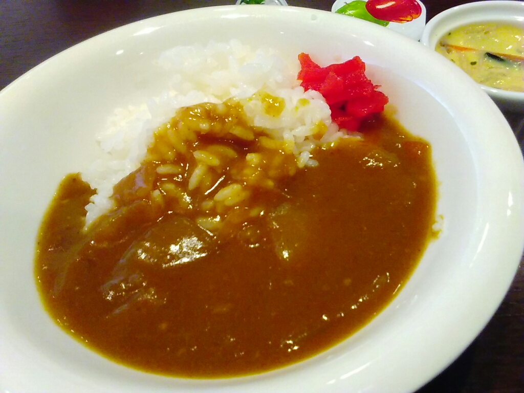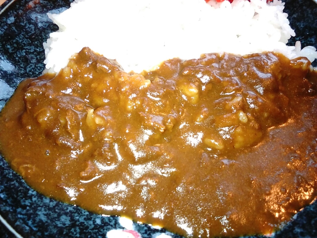 細かいビーフが入ったカレー。具はルーに溶け込んで、ホテルカレー(レトルトの)っぽい風味。