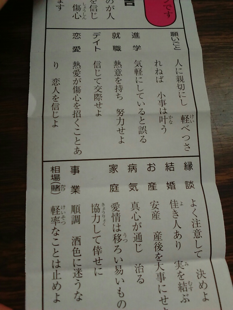 自分にはおみくじをひいて、小吉。