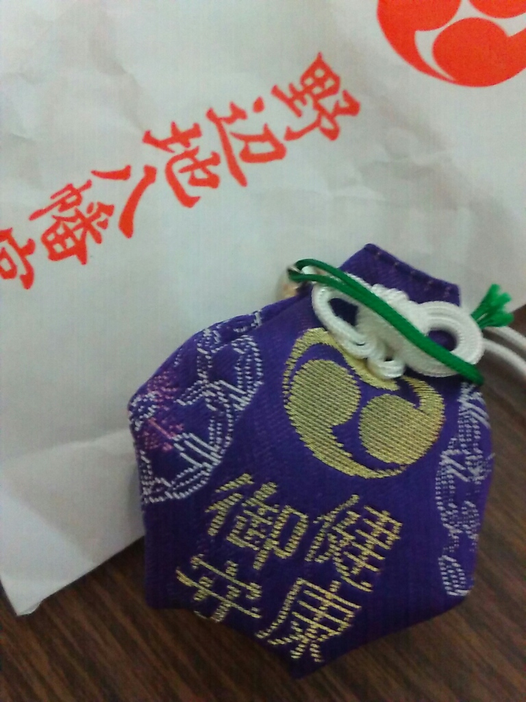 ぷっくりしたフォルムがかわいらしい健康御守、赤いのと2色あった。