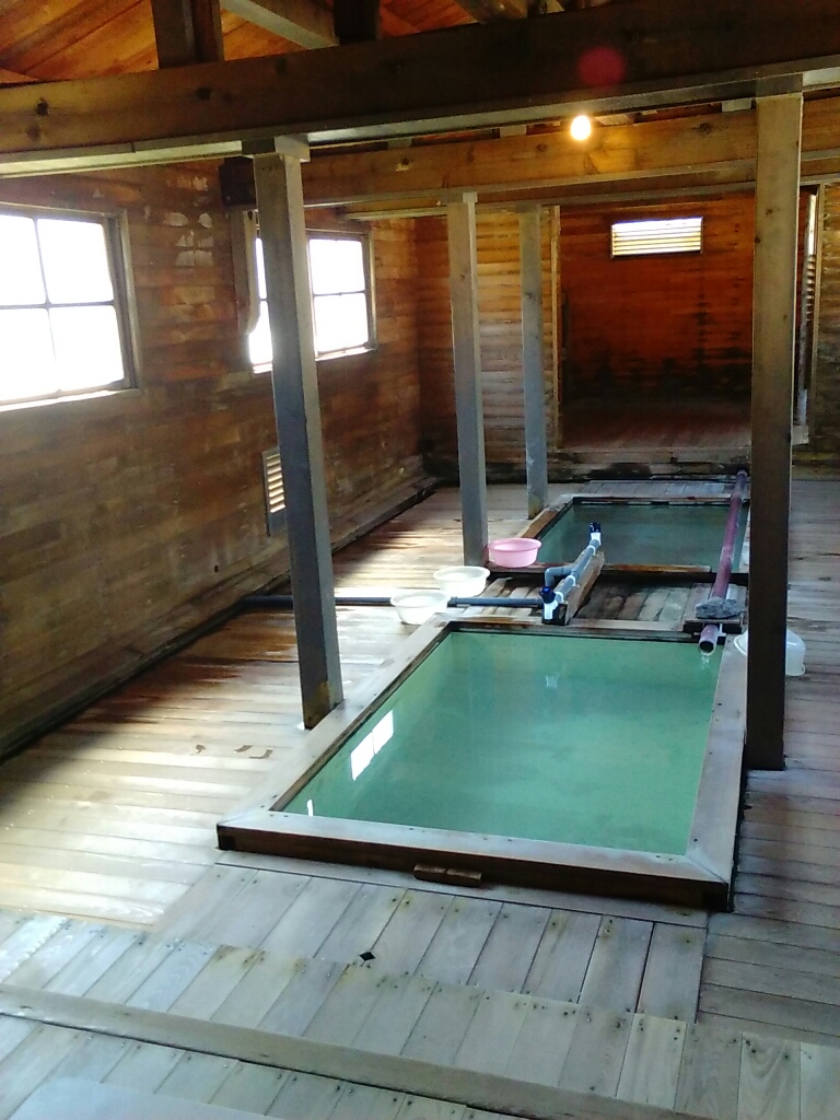 ここで2湯めに移動するのに真っ裸で外へ出るわけにもいかんので、メンドーだがひとまず服を来て下界へ。