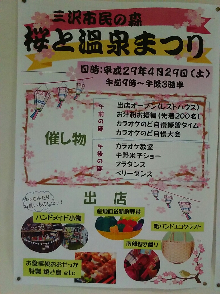 4月29日には、毎年恒例『桜と温泉まつり』があるらしいが、午前の部の「カラオケのど自慢練習タイム」ってのは、なんなのか?