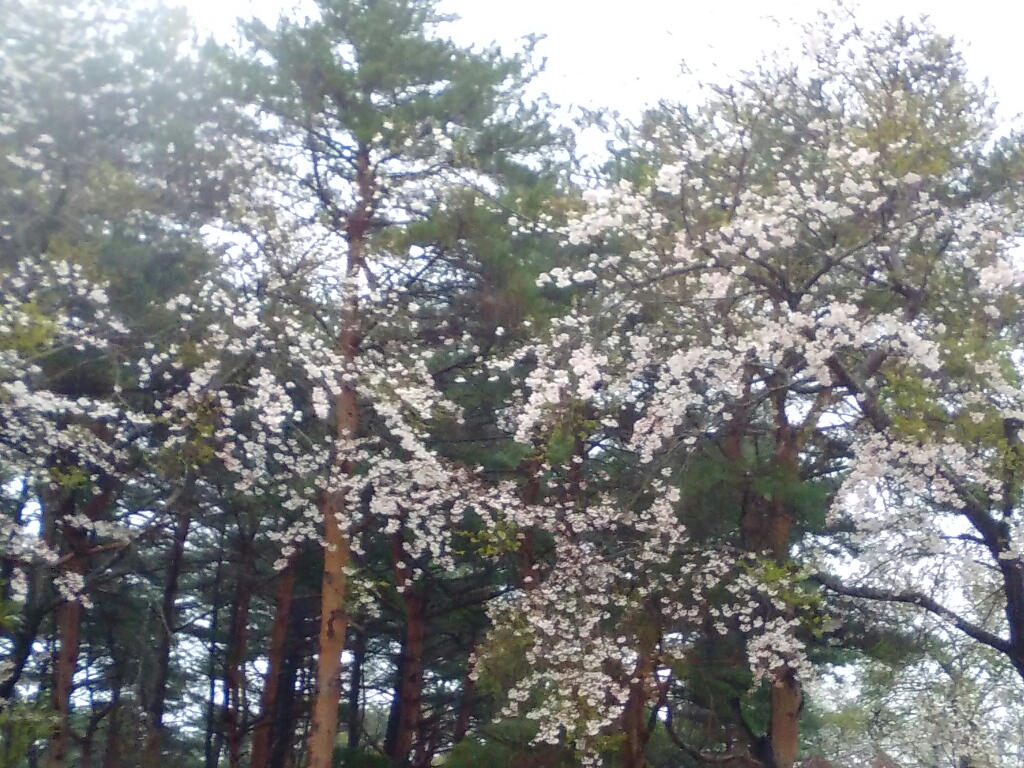 外は雨、桜の花咲いてた。