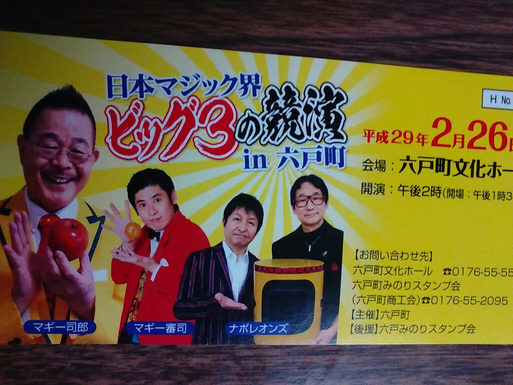 昨日、六戸町文化ホールで開催された『日本マジック会ビッグ3の競演』のひとコマ。