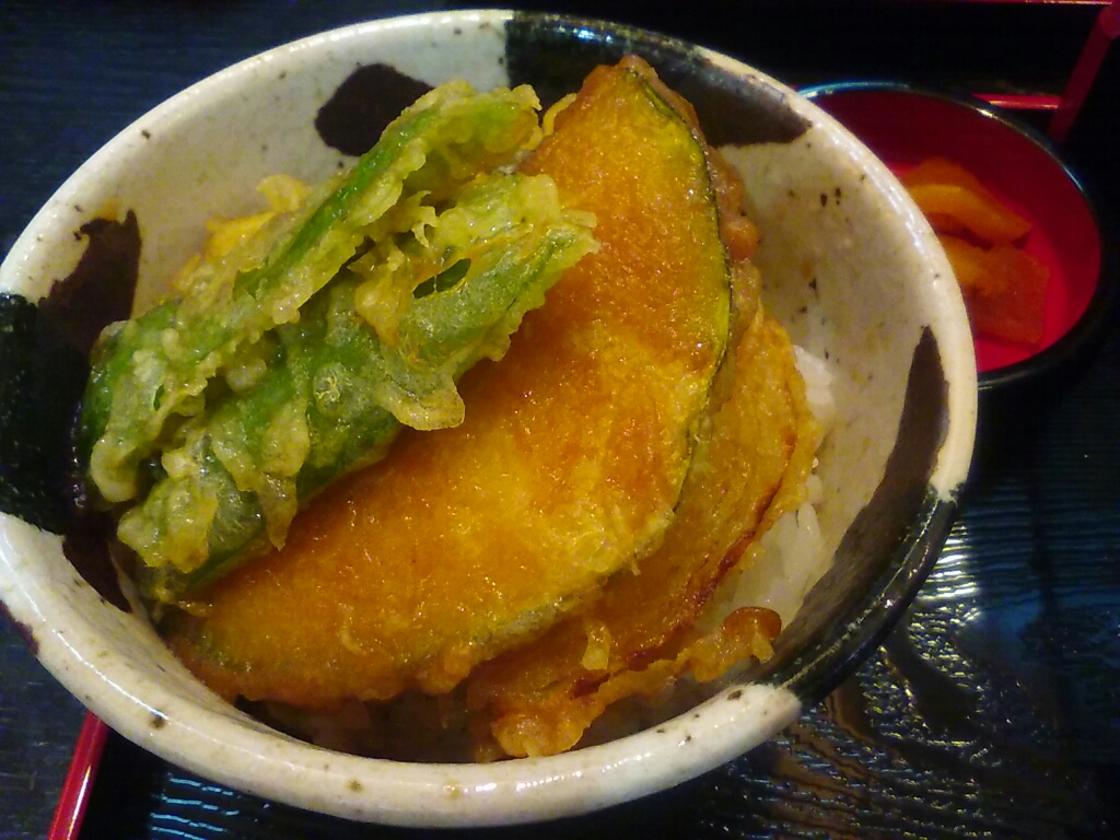 今回は、人気ナンバーワン天丼セット(→コチラ参照)ではなく、同じ値段の野菜天丼セットを頼んでみた。