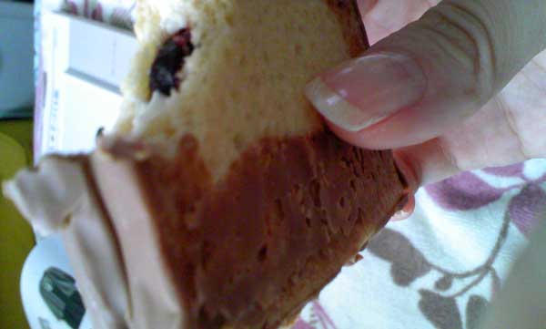 外枠はミルクチョコでふんわりケーキと思いきや、クッキーだな。