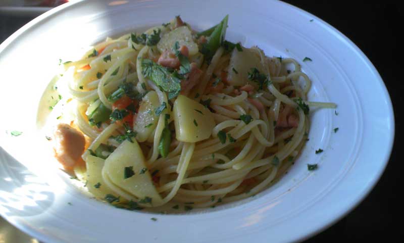 サーモン・ジャガイモ・アスパラ・トマトのリングイネッテをセレクトしてみた。