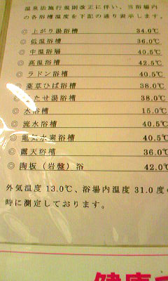 低・中・高と温度の異なるお湯に、薬草風呂、活性化水素風呂、サウナ、うたせ湯・・・バラエティーに富んだお風呂は飽きることなく心地よくて、ここの人気ぶりが容易に理解できた。