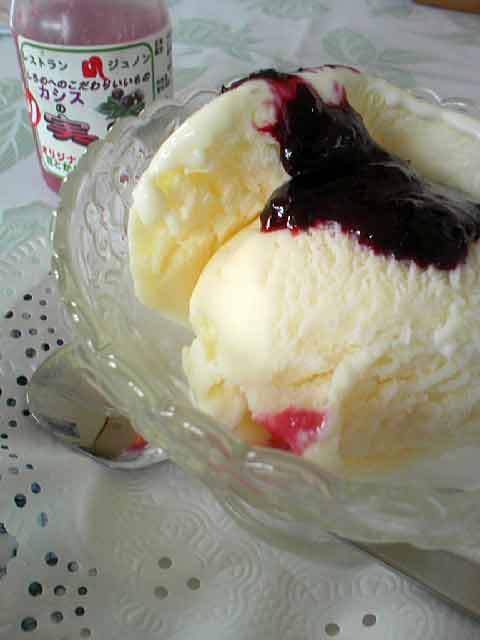 シェフに、このアイスにカシスドレッシングをかける食べ方をすすめられた。