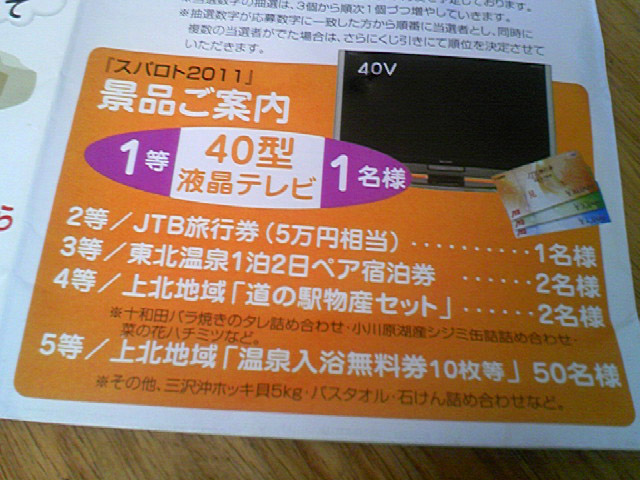 商品、1等は40型テレビ!