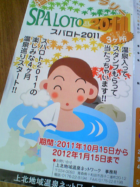 明日、10月15日より上北地域温泉ネットワーク参加『34湯』のうち、3ヶ所のスタンプを集めてハガキで応募するとステキな商品が当たるというスタンプラリーが開催されるという。