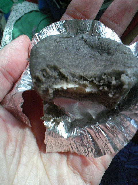 写真うしろ、郡山ごまチョコケーキをさっき食べた。