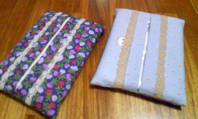 両面テープを貼った針金ハンガーに、1.5cm巾に切った布をぐるぐる巻きつけておわり。手芸というより、工作ってかんじ。
