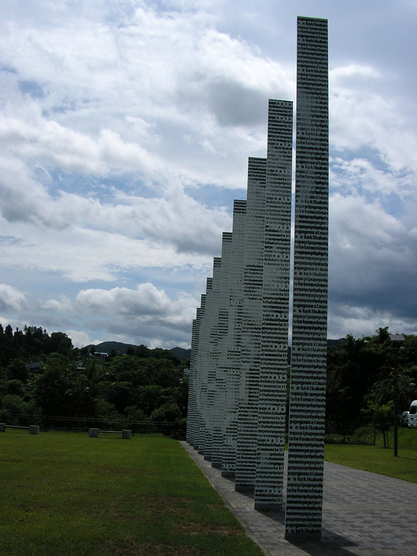 文字通りローマ字がびっしりで間近ではなんだかよくわからなかったが、館内から見下ろせばこれが単なるローマ字の羅列でないことに気づく。