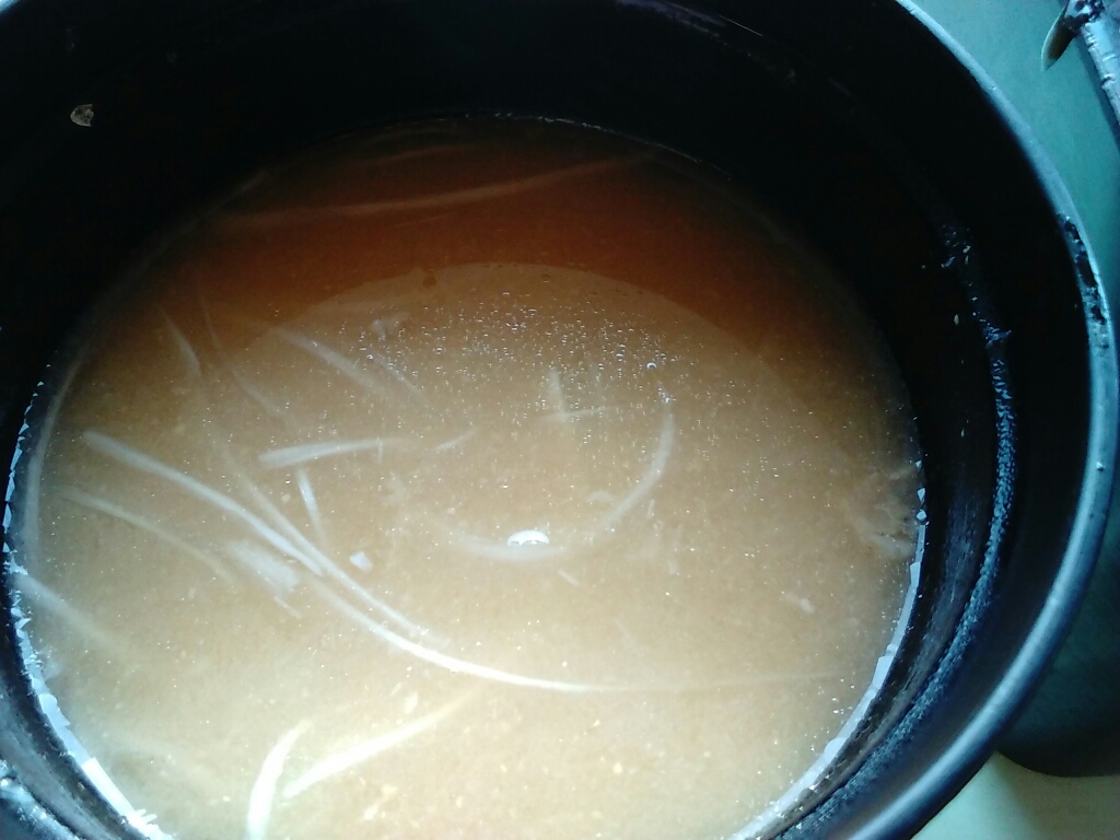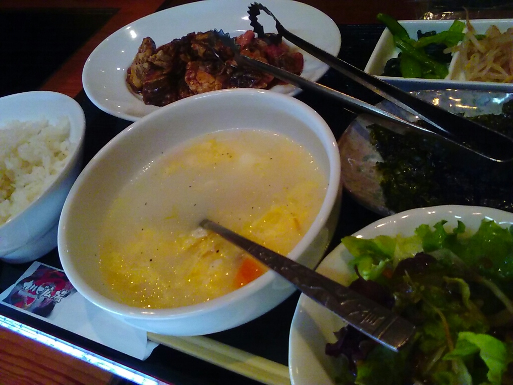 このたまごのスープがまたおいしかった。具はニンジンやしいたけなど。