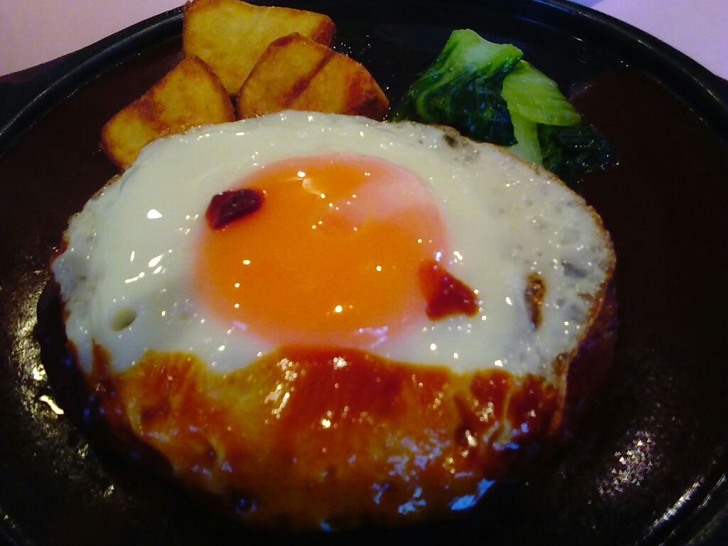 目玉どん!っとあつあつのハンバーグ。