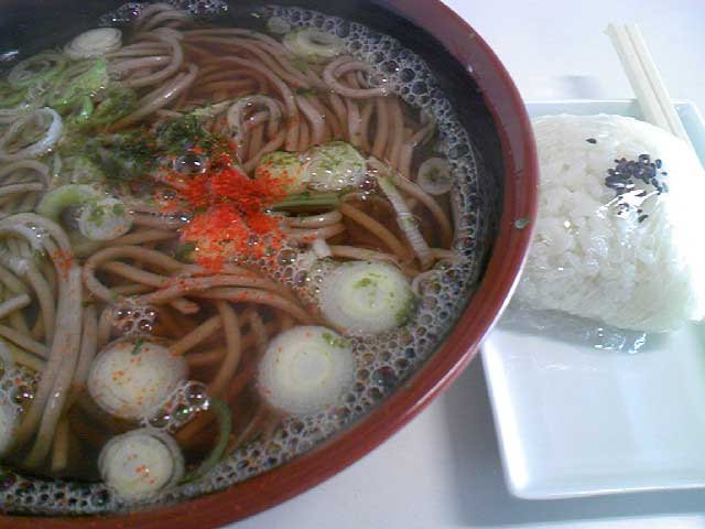 生そば250円と、梅のおにぎり80円。