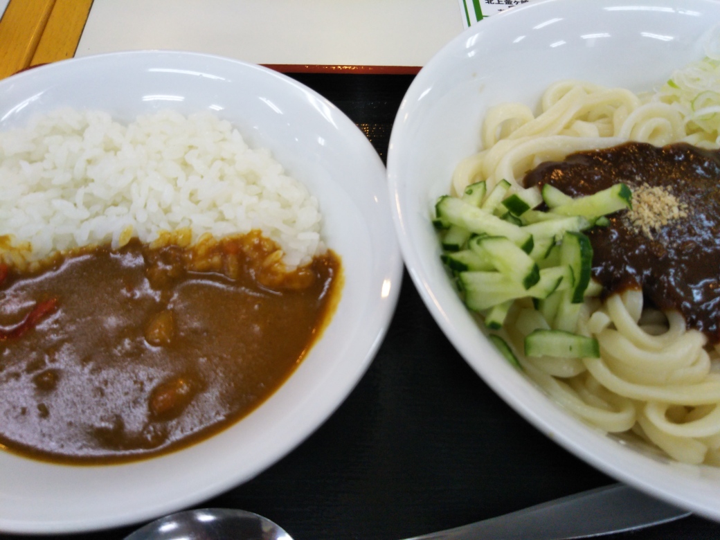 じゃじゃ麺とミニカレーのセット。券売機でたしか800円だったか。