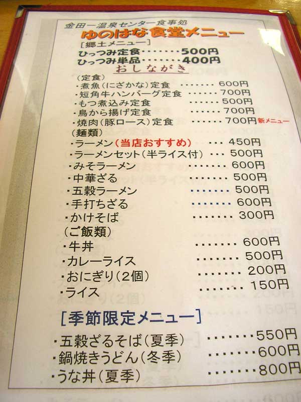 場所は、金田一温泉センターゆうゆうゆ~らく内『ゆのはな食堂』。