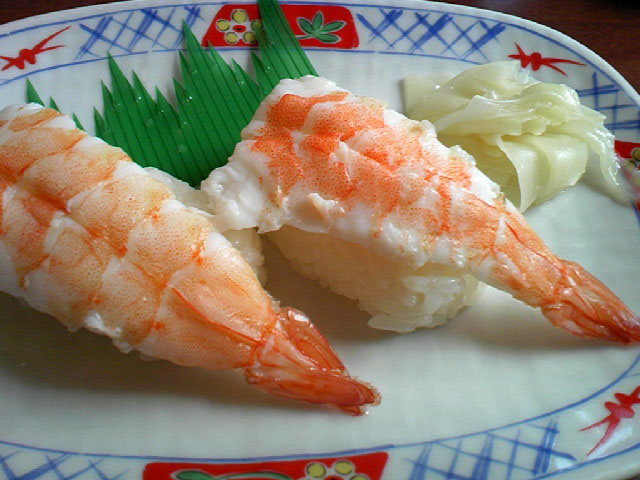 蒸しエビ寿司のセット。