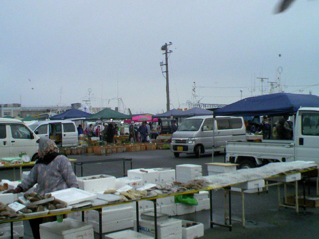 朝市デビューは雨降り・・・浜風ぴゅーぴゅー、さみーったら!