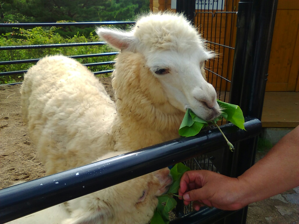 いきなり、アルパカ参上。うっひゃー、かわいー!!!
