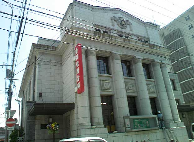盛岡信用金庫本店(旧盛岡貯蓄銀行)、外国で見かけるような重厚なつくりの建物。柱が印象的。