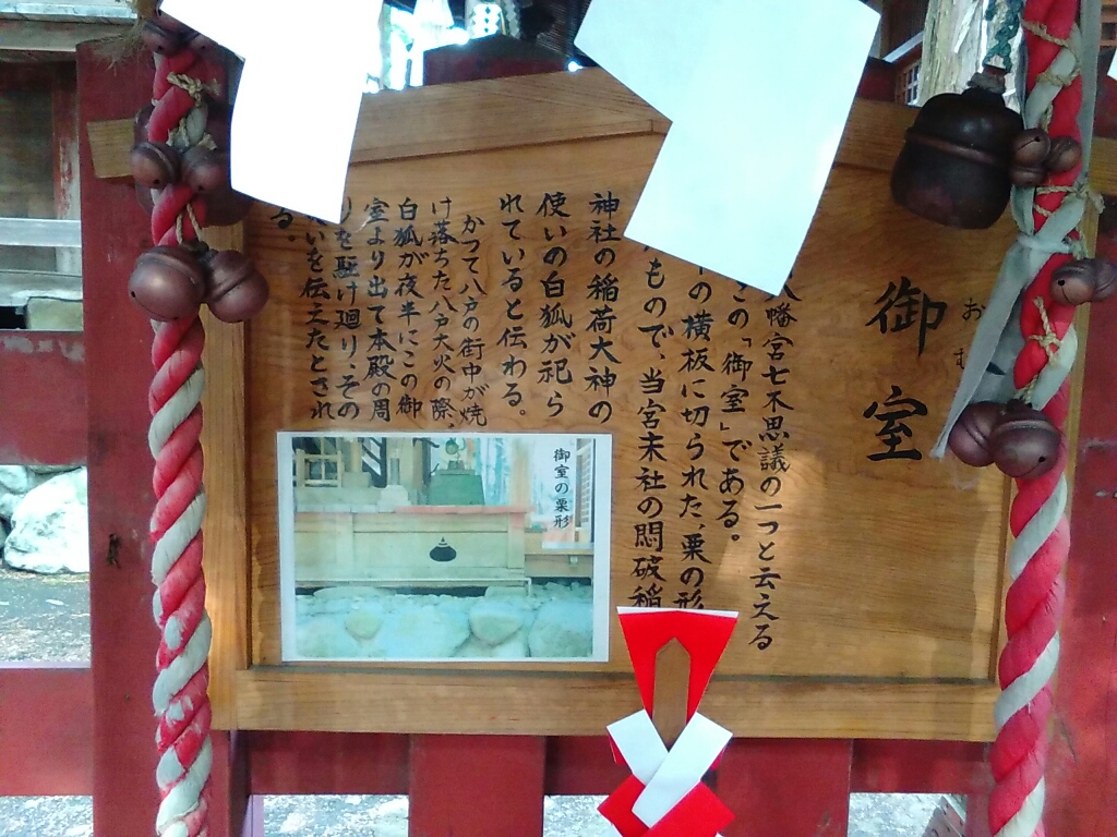 かつて八戸大火の際、白狐がここから出て本殿の周囲を廻り災いを伝えたという。