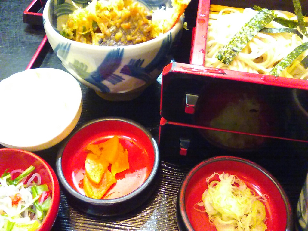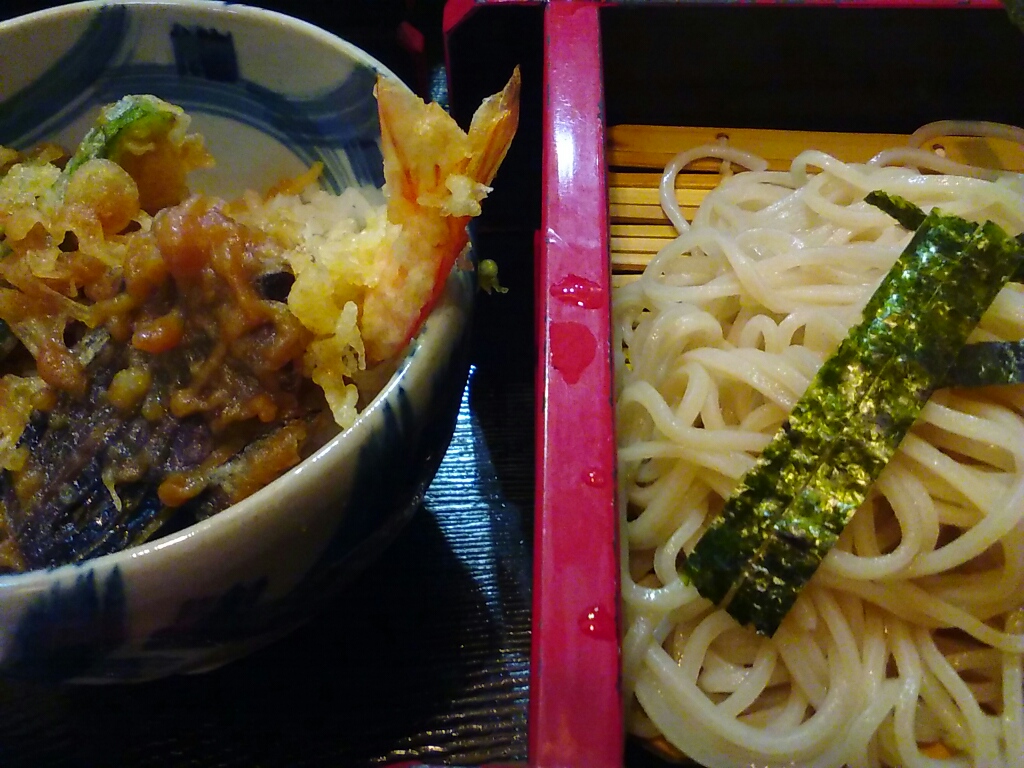 あったかご飯の天丼と、細麺のど越しつるつるのざるそばのコンビネーションは最強。