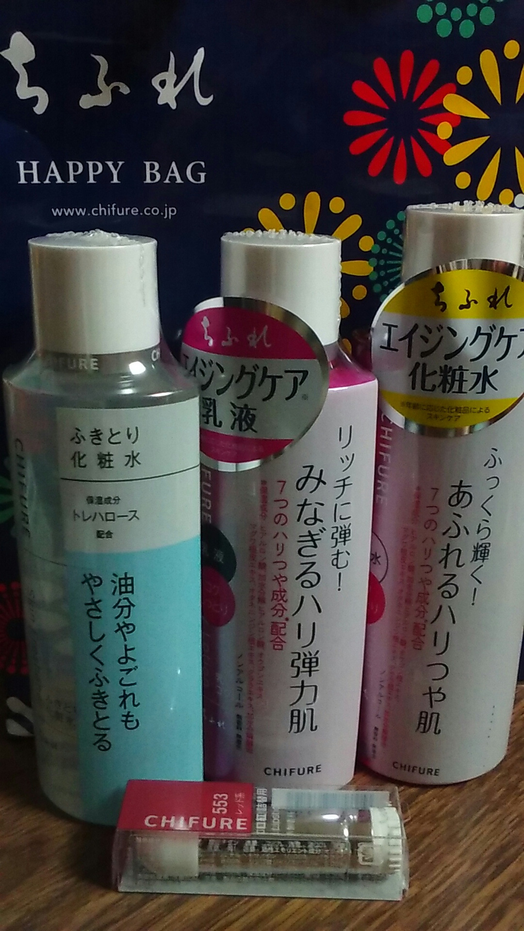ちふれとてハッピーバッグ。ちょっぴりハッピーで贅沢な気分でも味わいたくなるわ。