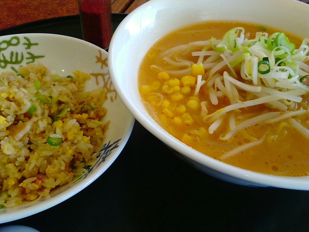 気のせいか?ラーメンと炒飯、最近この組み合わせが多い。私の中でいま、これが最強のコンボなのかも。特に味噌ラーメン、麺がつるつるでおいしかった。