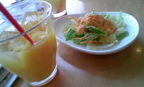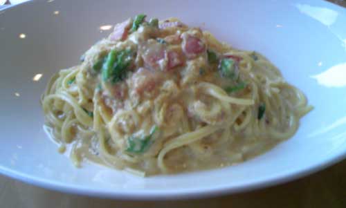 菜の花のカルボナーラとオレンジジュースをオーダー。