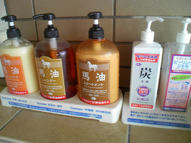 私は温泉施設でたまにだけお目にかかれる、お気に入りの馬油シリーズを使わせてもらった。
