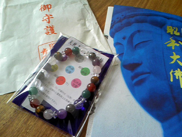 青龍寺ブレス(正式名称は「天然石七色厄除腕輪」)、1500円也。