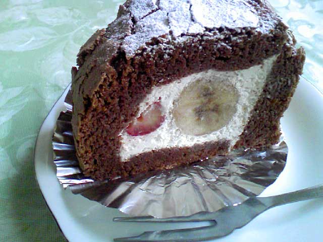 フルーツの入ったロールケーキ、今回は1本じゃなく1切れ。