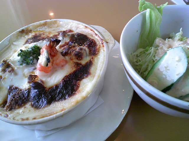 迷いに迷ってエビとしめじのドリア(+サラダ&ドリンク)をオーダーしてみる。