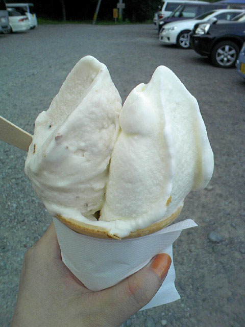 ちょいと大人味のラムレーズンとフレッシュなミルク。どっちもおいしかった。
