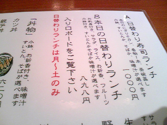 母は天ぷら定食、父は日替わり寿司ランチに即決。