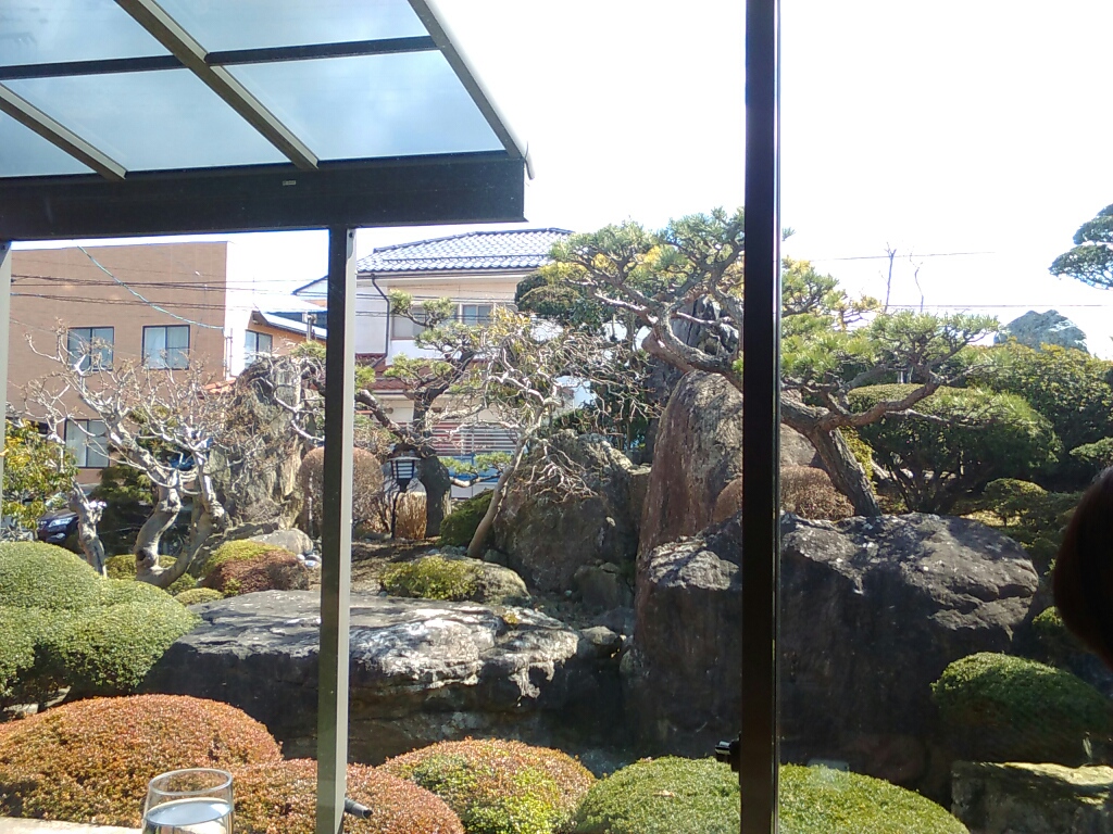 普通の住宅っぽい店構えだったけど、店内は雰囲気あった。窓の外もちょっとした料亭風の日本庭園。