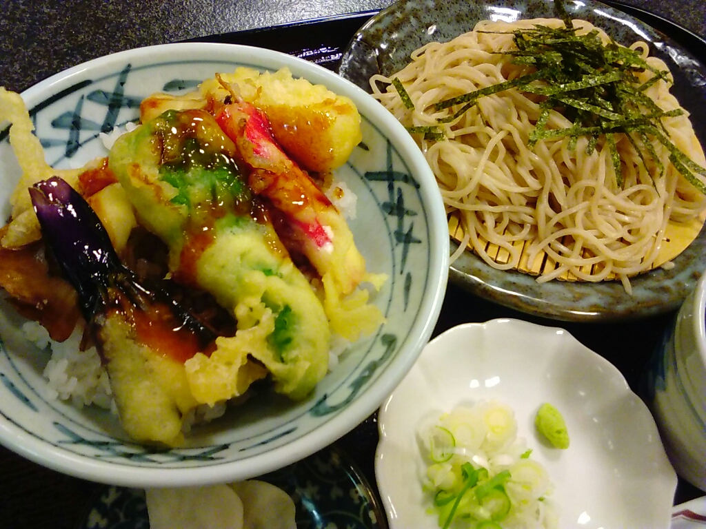 この日は、天丼とざる蕎麦のセットメニューを頼んだ。
