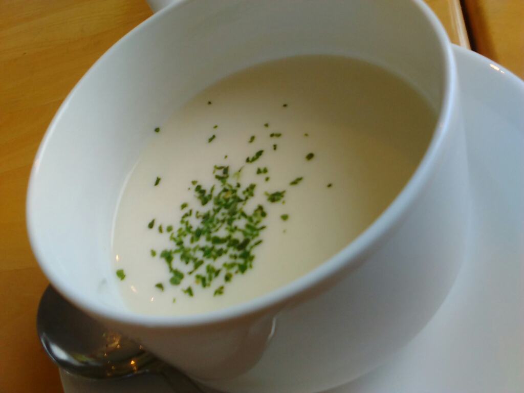 挨拶代わりのスープ。先ずはビシソワーズの登場。