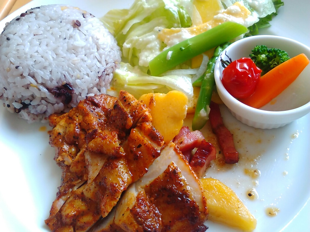 プレートランチ、ほどよくスパイシーなタンドリーチキン。うまし。